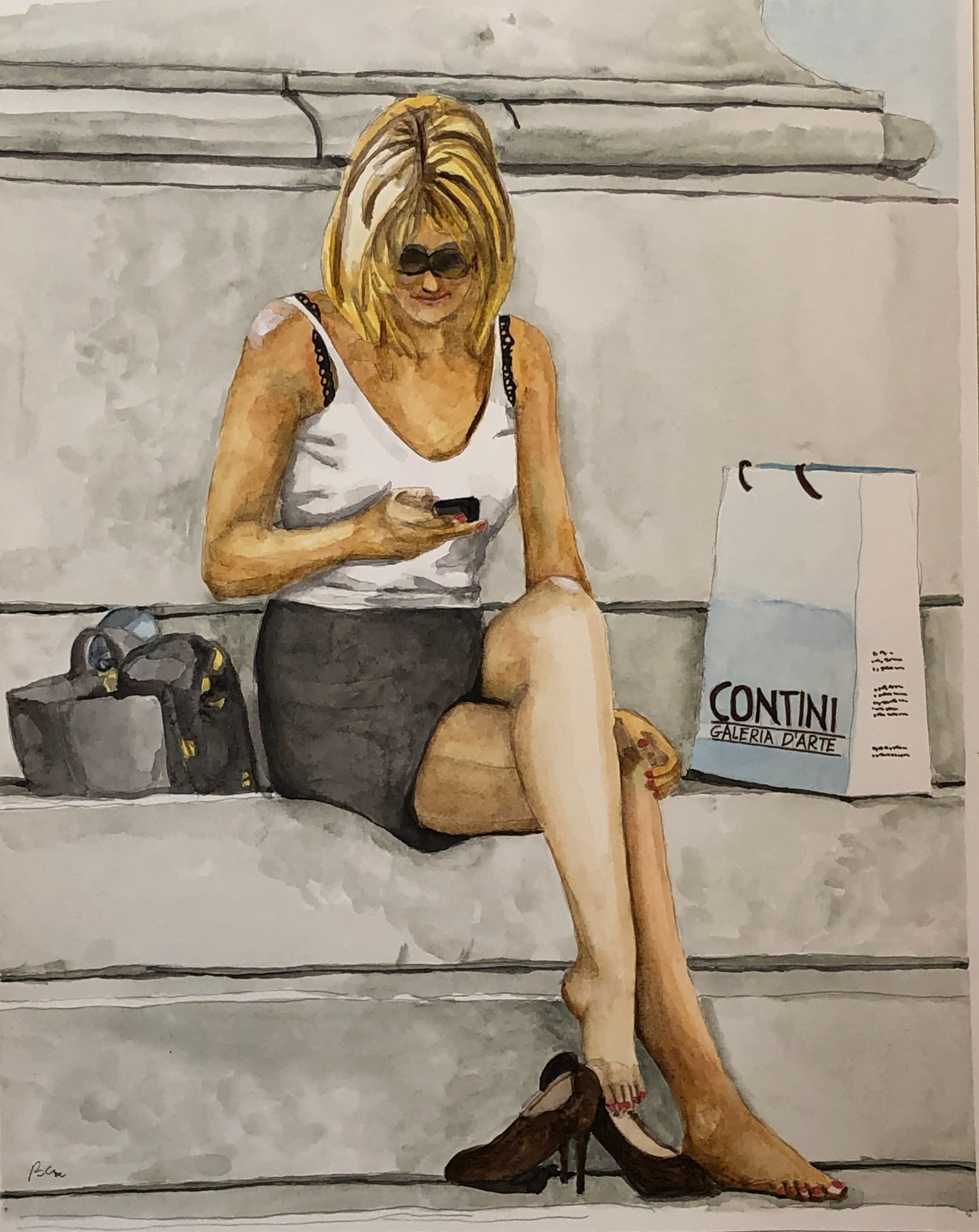 Title: On The Phone Venice Medium: Watercolor Size: 16 x 20 Share this: Click to share on X (Opens in new window) X Click to share on Facebook (Opens in new window) Facebook Like Loading... Related