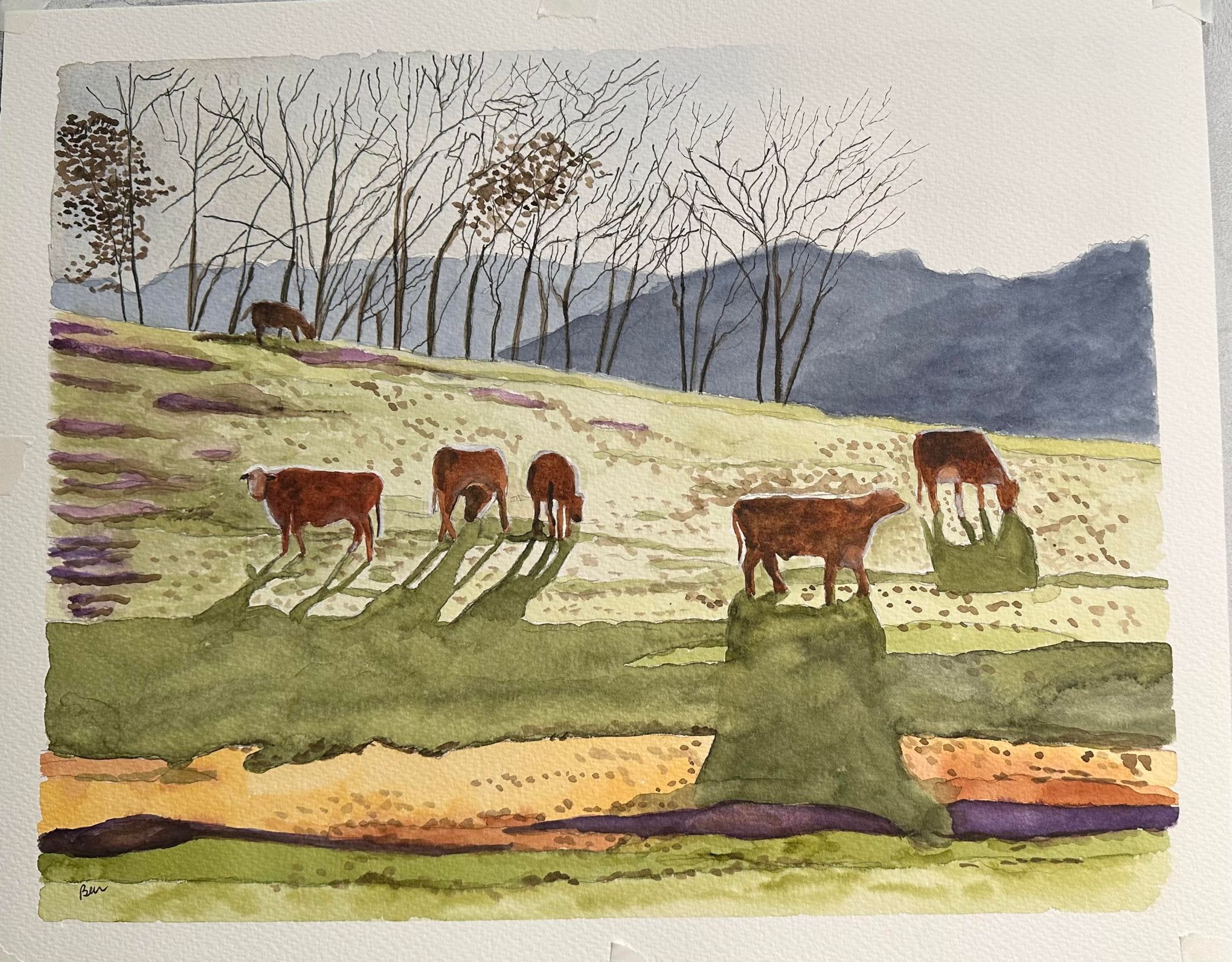 Title: Cornell’s Cows 1 Medium: Watercolor Size: 16 x 20 Share this: Click to share on X (Opens in new window) X Click to share on Facebook (Opens in new window) Facebook Like Loading... Related